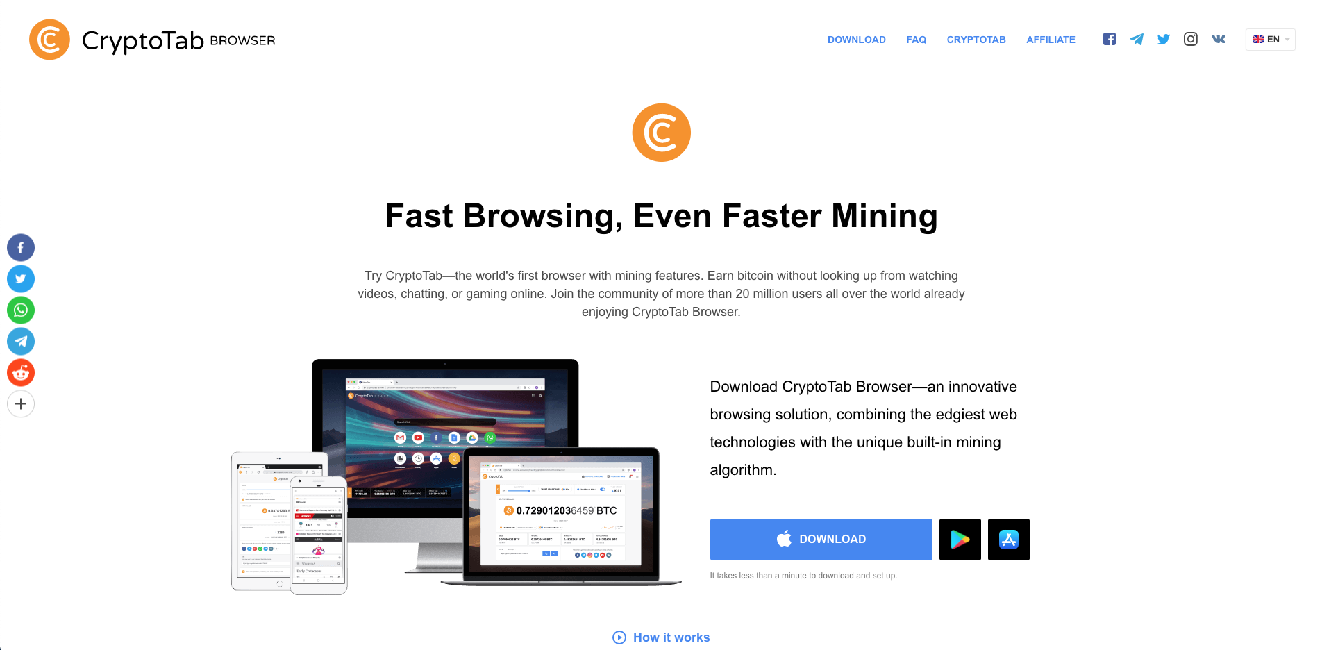 CryptoTab Browser is the world’s first web browser with built-in mining features. Familiar Chrome user interface is perfectly combined with extremely fast mining speed. Mine and browse at the same time!