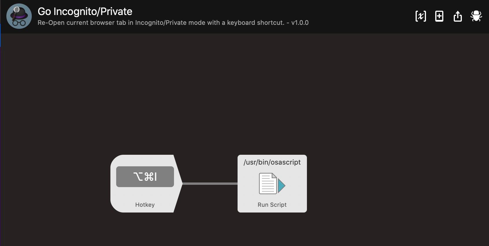 이 워크플로를 사용하면 현재 탭을 무인지 창에서 열 수 있습니다. 설정할 수 있는 키보드 단축키와 voila를 사용하면 웹 페이지가 인식되지 않는 창에 열립니다.