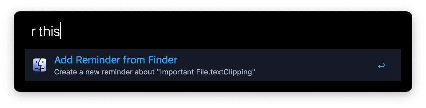 그게 다가 아닙니다. 특정 앱 및 파일에 연결하여 미리 알림을 설정할 수도 있습니다. 예를 들어 Finder에서 파일을 선택하고 "r this" 명령을 사용하여 선택한 파일에 대한 링크가 포함된 미리 알림을 만들 수 있습니다. 현재 이 기능은 Safari(전경에 있는 탭의 웹 페이지에 대한 링크를 만들 예정), Finder, Google Chrome, Microsoft Word, Mail 등을 포함한 12개 이상의 앱만 지원합니다. 목록이 길지 않지만 Safari, Mail 및 Finder 링크만 있으면 충분합니다.