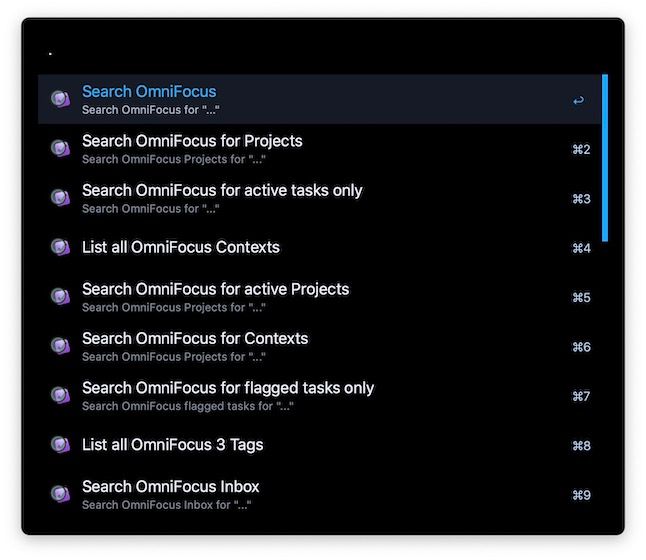 A Workflow for the OS X app Alfred: This is a workflow that performs free text searches on OmniFocus 3 data.
