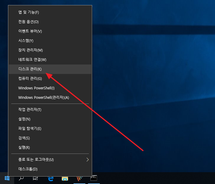 - 시작 아이콘에 마우스를 올리고 우클릭을 합니다.
