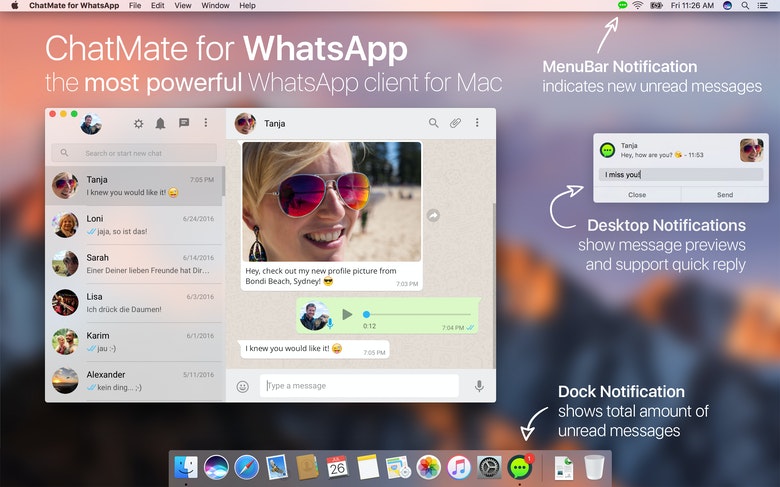 왓츠앱 메시지를 많이 보낸다면 맥에 왓츠앱 데스크톱(WhatsApp Desktop)을 설치하는 것이 좋다. 기본적으로 화면에 떠다니는 창에서 웹 인터페이스를 구현한 것인데, 이 앱에서 처리한 작업은 서버와 동기화되므로 메시지를 읽거나 답장할 때마다 휴대폰을 꺼내지 않아도 된다. 단, 휴대폰을 멀리 두면 안 되고 와이파이에 연결해 둬야 한다. 전화도 할 수 없다. 그러나 왓츠앱을 일상적으로 사용한다면 꼭 설치해야 할 앱이다.