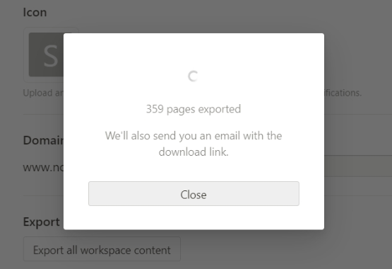 노션에서 백업을 요청하면, 백그라운드에서 압축 파일을 생성한 뒤 이메일로 다운로드 링크를 보내줍니다. 이 링크는 7일간 유효합니다.