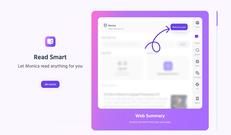 • 웹페이지에서 텍스트를 드래그한 뒤 즉시 Monica로 요약하거나 번역할 수 있음.