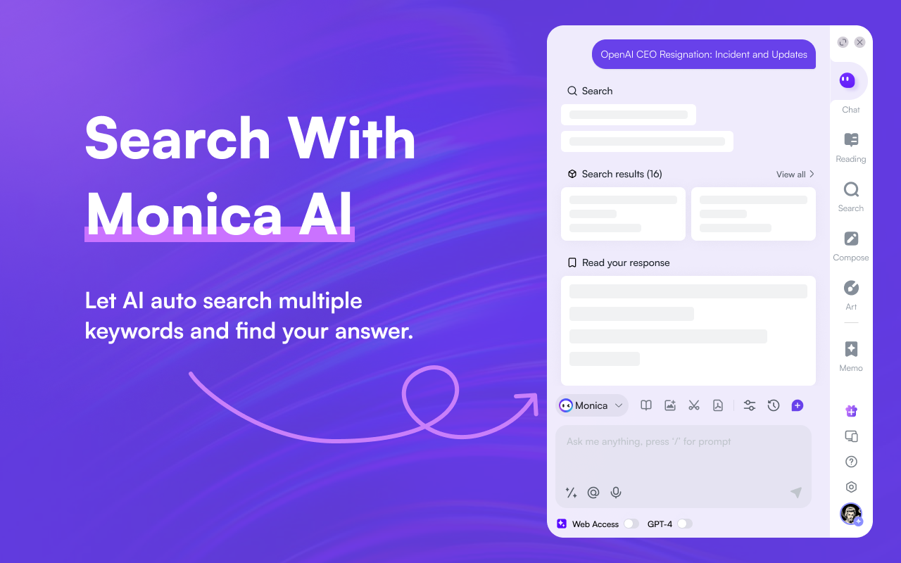 Monica 덕분에 저도 AI 활용도가 정말 달라졌다고 느껴요. 특히 Claude-3.5나 GPT-4o처럼 최신 모델을 직접 써볼 수 있어서, 단순히 글쓰기 도우미가 아니라 진짜 스마트한 파트너가 생긴 기분이랄까요?