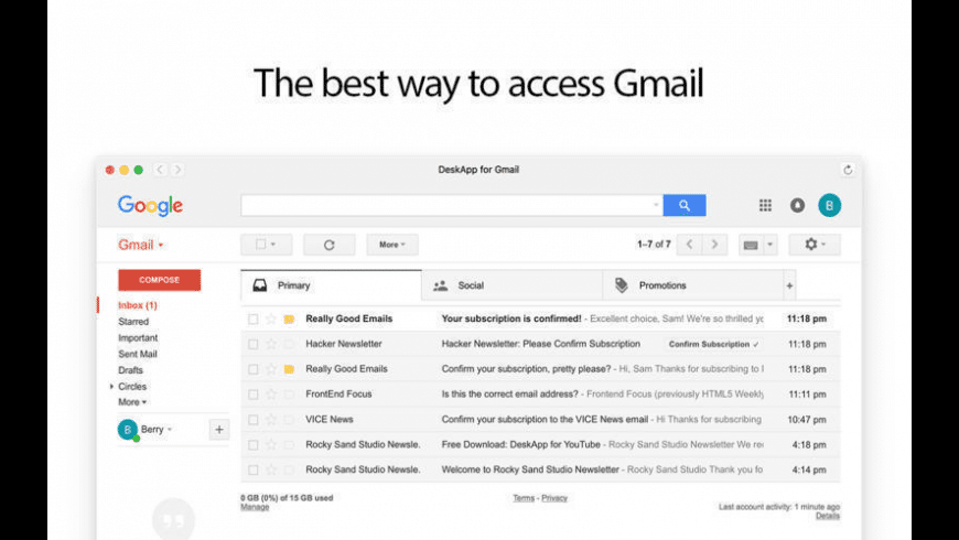 당연히 맥의 기본 메일 앱을 이용해 지메일 메시지를 불러올 수 있다. 그러나 '메일 포 지메일(Mail for Gmail)'을 이용하면 이 작업을 더 수월하게 할 수 있다. 인터페이스는 구글 웹과 비슷하고 구글 미트(Google Meet), 주소록, 캘린더, 킵 노트(Keep Notes) 등에 바로 접속할 수 있다. 빠르게 로그인해 투명도나 테마, 보기 형태를 수정할 수 있다. 간간이 로키 샌드 스튜디오(Rocky Sand Studio)의 다른 앱을 홍보하는 광고창이 나타나는데 이 앱의 완성도를 생각하면 충분히 감수할만한 불편이다.